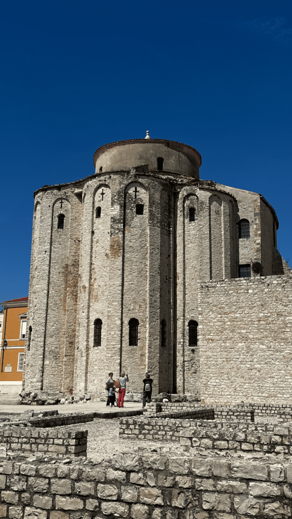 One of the most recognizable buildings in Zadar is the Church of St. Donatus. Built in the early medieval period, it is considered one of the most important examples of pre-Romanesque architecture in Croatia. Compared with the richly decorated churches many travelers may know from Italy or Central Europe, St. Donatus feels more severe and monumental.